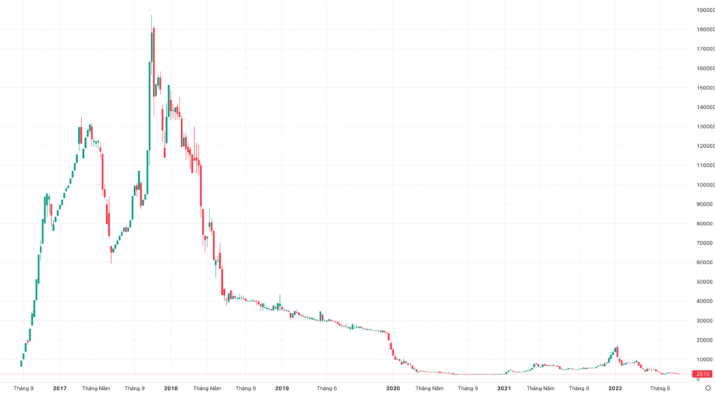 Cổ phiếu ROS từng đạt đỉnh gần 180.000 đồng trước khi xuống mốc 2.500 đồng và bị hủy niêm yết.