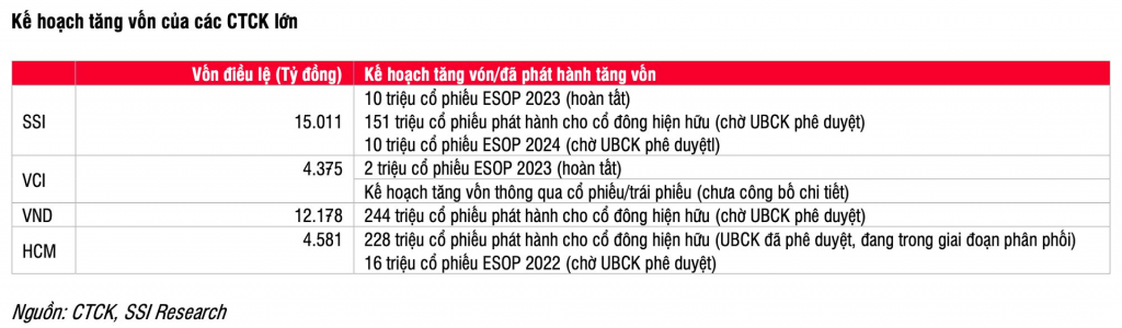 Theo bộ phận phân tích này, các CTCK đã đẩy mạnh hoạt động tăng vốn kể từ quý 2/2023 nhằm chuẩn bị cho nhu cầu của thị trường sắp tới. Ngoại trừ một số lượng nhỏ các CTCK tăng vốn nhằm tái cấu trúc danh mục đầu tư trái phiếu doanh nghiệp của mình, việc tăng vốn sẽ mở rộng khả năng cho vay ký quỹ của các CTCK và duy trì bảng cân đối kế toán lành mạnh, cũng như đáp ứng yêu cầu về an toàn vốn mà UBCK đưa ra.