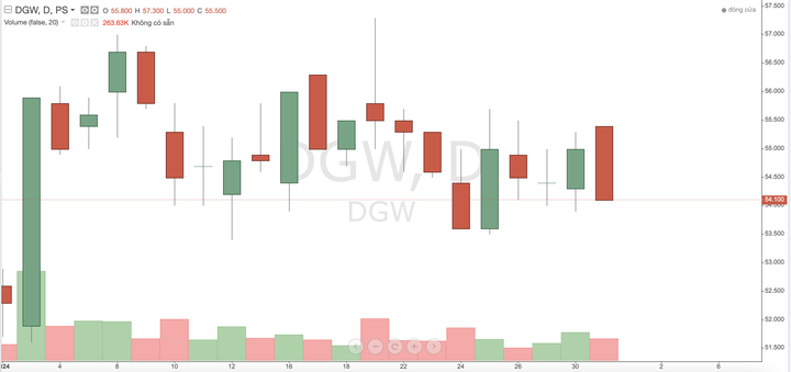 Thị giá cổ phiếu DGW trong thời gian gần đây