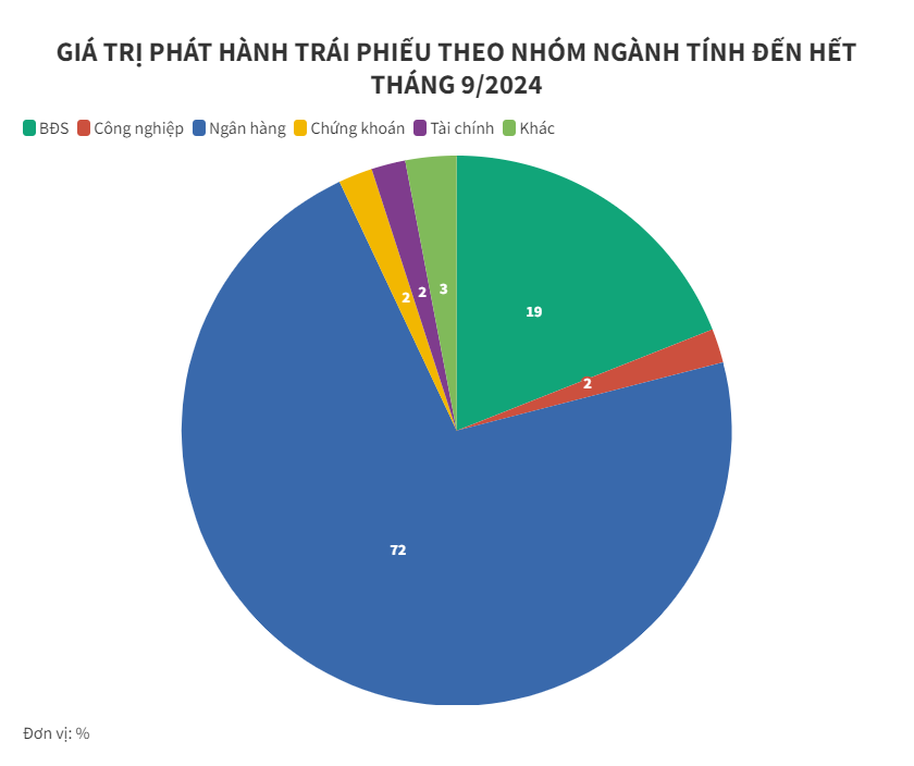 Nhóm ngân hàng hiện vẫn dẫn đầu về giá trị phát hành với tổng giá trị đạt 199.764 tỷ đồng, tương đương 72% tổng giá trị phát hành.