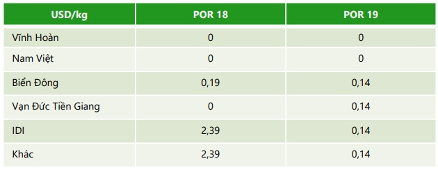 Theo đó, hầu hết các doanh nghiệp Việt Nam sẽ được hưởng mức thuế chống bán phá giá là 0,14 USD/kg. Những doanh nghiệp như CTCP Vĩnh Hoàn (HoSE: VHC) và CTCP Nam Việt (HoSE: ANV) sẽ tiếp tục được hưởng mức thuế 0 USD/kg.