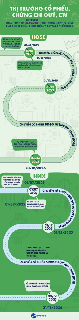 Chậm nhất tới ngày 31/12/2025, HNX sẽ chuyển hết cổ phiếu niêm yết về HOSE và chậm nhất tới 31/12/2026, toàn bộ cổ phiếu đăng ký giao dịch (UPCoM) sẽ được chuyển về HOSE.