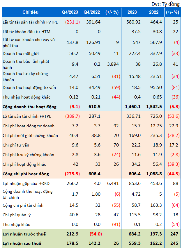 Kết thúc quý 4, SHS lãi trước thuế 212.9 tỷ đồng. Lợi nhuận sau thuế tương ứng đạt 178.5 tỷ đồng, tăng gần 26% so với quý 4/2022.