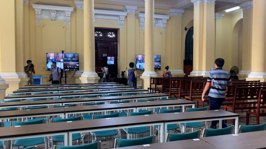 Vì phòng xét xử nhỏ, không thể đáp ứng được lượng phóng viên báo, đài tác nghiệp nên chỉ tác nghiệp qua màn hình ti vi.