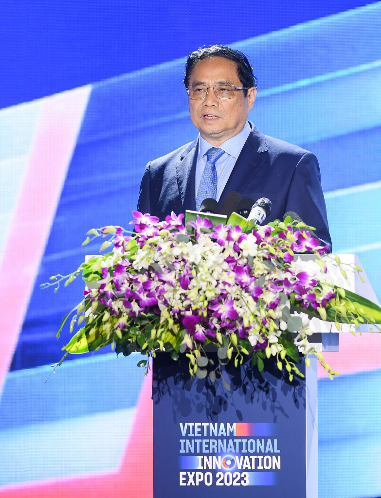 Thủ tướng hoan nghênh, đánh giá cao ý tưởng kết nối đầy đủ các chủ thể của Hệ sinh thái Đổi mới Sáng tạo Việt Nam thông qua Triển lãm Quốc tế Đổi mới Sáng tạo Việt Nam 2023 với vai trò trung tâm của doanh nghiệp và vai trò nghiên cứu của các Viện, Trường theo đúng tinh thần của Nghị quyết số 52-NQ/TW của Bộ Chính trị.